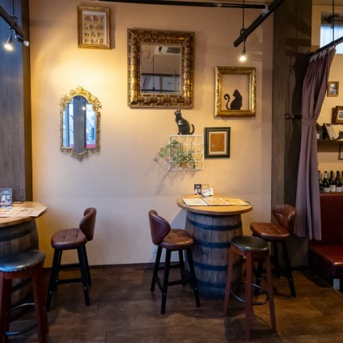 オシャレにきめるなら樽のカウンターテーブル!2名~3名様に人気です!お席指定をカウンターにするとこちらの席にお通しするかも,,,?